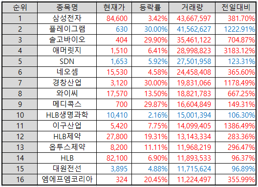 거래량 상위 종목