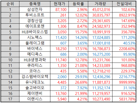 거래량 상위 종목
