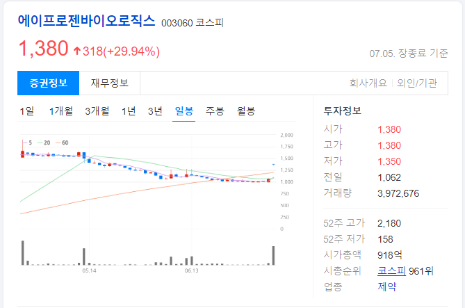 에이프로젠바이오로직스 1,380원 (↑29.94%)