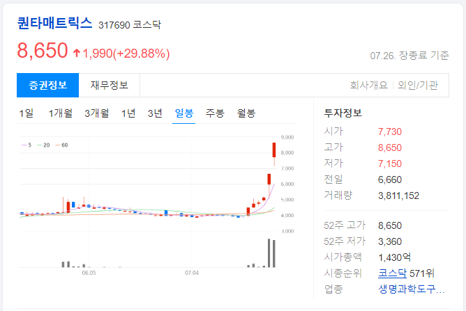 퀀타매트릭스 8,650원(↑29.88%)