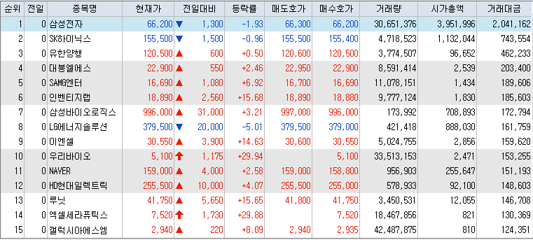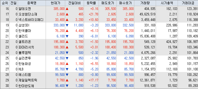 9월 10일 거래대금 상위 30 종목