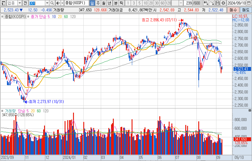 미국의 경기 침체 우려가 일부 완화되고 엔비디아 등 반도체 관련주도 상승했지만 애플에 아이폰 16 공개 후 하락했다. 애플은 신규 제품 출시 직후에는 하락하는 경우가 많았다고 한다. 판매데이터가 나와야 이후 이후 주가의 상승 여부를 판단할 수 있을 것이다.